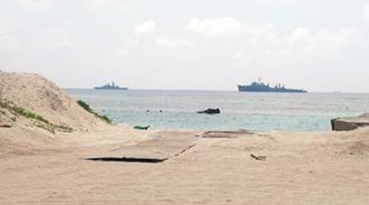 臺(tái)海軍康定級(jí)巡防艦、旭海船塢登陸艦巡弋南海,在太平島外海錨泊,由“中科院”進(jìn)行無(wú)人偵察機(jī)升空測(cè)試!氨O(jiān)委”在島上視察,目擊無(wú)人機(jī)凌空。