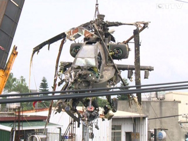 編號(hào)808的AH-64E的臺(tái)軍阿帕契直升機(jī)墜毀龍?zhí),臺(tái)當(dāng)局“國(guó)防部”仍在調(diào)查事發(fā)原因。(圖片來源:臺(tái)灣東森新聞)