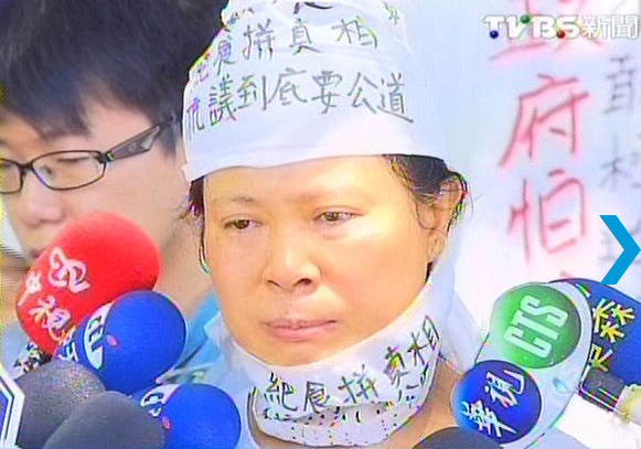 決定禁食,幫兒子找真相,因為當時最后一通電話,是兒子跟媽媽報備要回來過母親節(jié),但臺軍方認定是飲彈自殺,18小時內(nèi)結案火化。這幾年,蔡媽媽為了真相奔波,卻沒結果,決定在母親節(jié)開始禁食。有類似經(jīng)驗的洪仲丘舅舅穿著印有洪媽媽哀傷神情的T恤前來聲援,臺軍方曾經(jīng)答應過要作彈道實測,還原真相,卻遲遲沒有實踐。