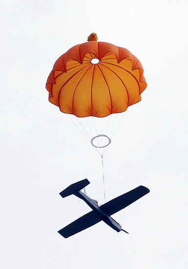 小型紅雀無人機降落時使用降落傘降落!爸醒肷纭