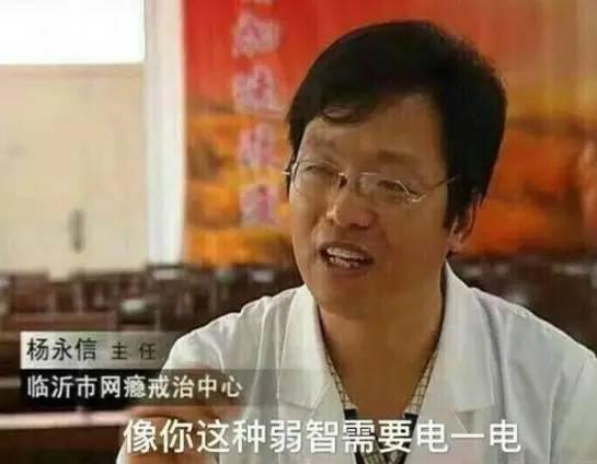 圖為網(wǎng)友創(chuàng)造的表情包,純屬調(diào)侃。楊永信本人并沒(méi)有說(shuō)過(guò)這句話,他的網(wǎng)戒中心和他的電擊療法耿直哥也不支持
