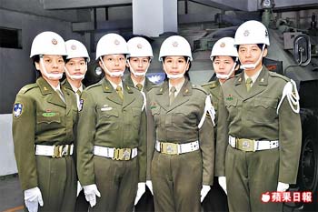 中國(guó)臺(tái)灣網(wǎng)12月31日消息 據(jù)臺(tái)灣《蘋(píng)果日?qǐng)?bào)》報(bào)道,被視為馬英九辦公室“鐵衛(wèi)部隊(duì)”的臺(tái)軍憲兵部隊(duì),在明年元旦前夕出現(xiàn)第一批女兵,身穿憲兵甲種服裝(即臺(tái)軍大禮服),在馬英九辦公室前站哨執(zhí)勤,讓這群護(hù)衛(wèi)首次展現(xiàn)另一種柔情風(fēng)貌。