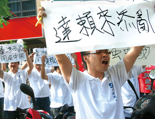 9月1日,臺灣民眾抗議達(dá)賴訪臺