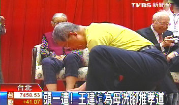 “監(jiān)察院”先前也辦過慶生會幫母親洗腳,王建煊透露,母親先前一直覺得“大男人洗腳成何體統(tǒng)”,不肯參加。這次是家人游說,母親才同意讓兒子幫她洗腳。