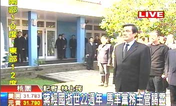 蔣經(jīng)國逝世22周年,頭寮陵寢一大早就有不少民眾前往鞠躬獻花,馬英九上午10時30分,率領國民黨中央黨部秘書長金溥聰?shù)赛h務主管前往謁靈。