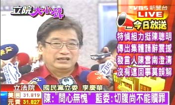 國民黨“立委”李慶華認為,陳聰明連切腹都不能贖罪。 來源:臺灣TVBS電視臺