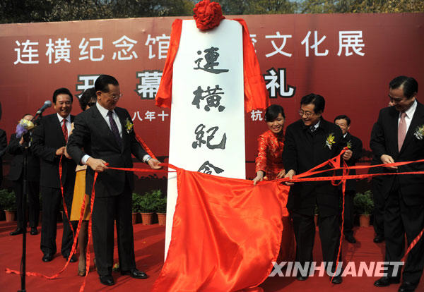 資料圖片:2008年12月18日,連戰(zhàn)在杭州為“連橫紀念館”揭幕。連橫紀念館位于杭州西湖風景區(qū)的瑪瑙寺內(nèi),連戰(zhàn)祖父連橫1926-1927年在杭期間,曾居住于該寺。連橫紀念館包括臺灣自然環(huán)境廳、歷史文化廳、臺灣原住民廳、連雅堂紀念廳、臺灣人物志廳、傳統(tǒng)工藝廳、現(xiàn)代工藝廳等七個廳,是兩岸文化交流的理想場所。 新華社記者 徐昱 攝
