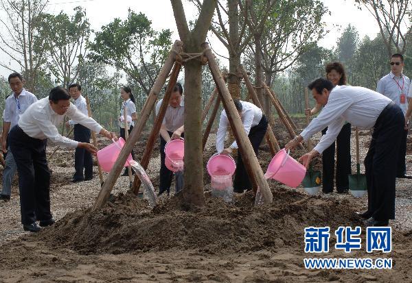 6月30日,陳云林(前右)、江丙坤(前左)在重慶照母山植物園為“合作共贏樹”澆水。當(dāng)日,海峽兩岸關(guān)系協(xié)會(huì)會(huì)長(zhǎng)陳云林與臺(tái)灣海峽交流基金會(huì)董事長(zhǎng)江丙坤來到重慶照母山植物園,共同種下了“合作共贏樹”,慶祝雙方成功簽署《海峽兩岸經(jīng)濟(jì)合作框架協(xié)議》《海峽兩岸知識(shí)產(chǎn)權(quán)保護(hù)合作協(xié)議》。新華社記者 陳誠(chéng)攝