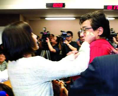 臺灣“立法院內(nèi)政委員會”去年4月間進(jìn)行第3次兩會領(lǐng)導(dǎo)人會談報告時,邱議瑩于李慶華發(fā)言之際不斷插話,2人發(fā)生口角,邱議瑩上前理論,遭李慶華辱罵“沒家教”、“潑婦”,因而當(dāng)眾掌摑李慶華。李慶華事后到臺北地檢署對邱議瑩提告,邱議瑩也反控李慶華公然侮辱。