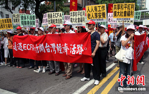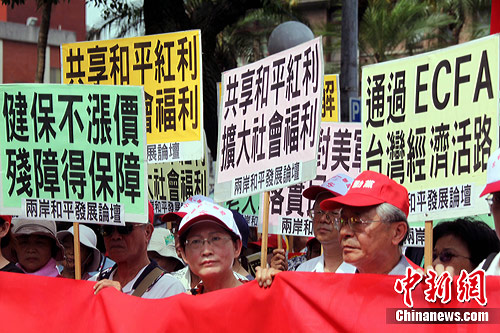 8月18日,由19個民間團體組成的“兩岸和平發(fā)展論壇”發(fā)起請愿活動,支持ECFA打開臺灣經(jīng)濟活路,并要求執(zhí)政當局停止對美軍購,以推行民生福利政策,深化兩岸政治互信。中新社記者 劉舒凌 攝