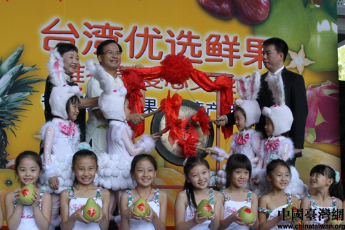 推薦會上,臺南縣長蘇煥智親自站臺宣傳,為來往市民送上新鮮的水果免費品嘗。曾在臺灣參與“八八水災”水果認養(yǎng)公益活動的北京藍天兒童藝術團的孩子們在推薦會上表演了精彩的節(jié)目。(中國臺灣網 程軼文)
