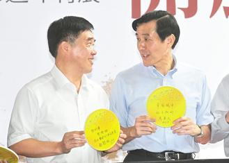 中國臺灣網(wǎng)9月18日消息 據(jù)臺灣“中央社”報道,馬英九今天肯定臺北市長郝龍斌的市政成績,寫下“幸福城市,好上加好”的祈福文字。郝龍斌則表示,花博是把臺灣花卉、環(huán)?萍寂c文化創(chuàng)意向全世界展示的舞臺。
