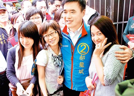 臺北市長郝龍斌(右二)及夫人高閬仙(第二排左三)一同出席活動,現(xiàn)場有女性民眾熱情要求和他們合影,高閬仙大方讓出老公拍照,自己在后面等待。 (來源:臺灣《中國時(shí)報(bào)》)