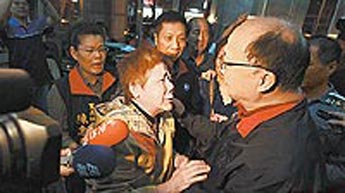 林宜君(左)向胡志強哭訴遭誤解涉入賄選。 圖片來源:臺灣《蘋果日報》