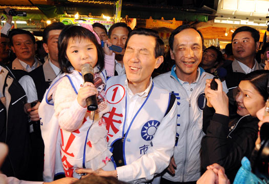 “五都”市長(zhǎng)、市議員、里長(zhǎng)“三合一”選舉倒數(shù)3天,身兼國(guó)民黨主席的馬英九加強(qiáng)輔選力道,拉抬臺(tái)北市、新北市選情。