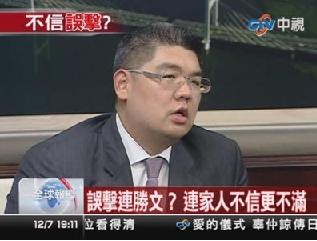 中國臺灣網(wǎng)12月8日消息 據(jù)臺灣“今日新聞網(wǎng)”報道,國民黨中央委員連勝文遭槍擊案迄今真相未明,但各種揣測不斷,大難不死的連勝文在接受平面媒體訪問時表示,他無法接受“誤擊”的說法,而連家也決定在近日內(nèi)采取必要行動,要求真相不可以被特定的政治目的所掩蓋。