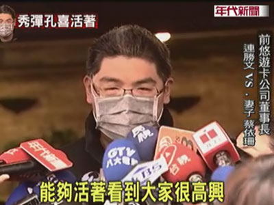 據(jù)報(bào)道,連勝文終于公開(kāi)露面,今日上午10時(shí)13分他在妻子蔡依珊的陪同下步出住處,僅說(shuō)了一句話:“謝謝大家關(guān)心,能夠活著看到大家,很高興,謝謝大家。”隨后便搭上座車,前往臺(tái)大醫(yī)院,未再多發(fā)表談話。