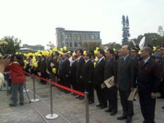 臺中縣即將走入歷史,臺中縣長黃仲生卻沒有出現(xiàn)在會場,因身體有疾病,他前往大陸準(zhǔn)備進行器官移植。臺中縣副縣長陳茂淵、張壯熙今日傍晚主持臺中縣府降旗典禮。臺中縣政府員工合唱縣歌,縣旗緩緩降下,由2名副縣長簽名收存縣旗,不少員工哽咽落淚。會后,現(xiàn)場與會員工同時施放手中的黃色氣球,氣球飄向天際,與會者彼此互道珍重再見,留下歷史畫面。