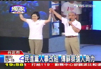 中國(guó)臺(tái)灣網(wǎng)1月20日消息 據(jù)臺(tái)灣TVBS電視臺(tái)報(bào)道,國(guó)民黨近日發(fā)生人事大地震,民進(jìn)黨也“跟風(fēng)”進(jìn)行人事改組,預(yù)計(jì)最快下周公布。其中值得一提的是,蔡英文將延攬?zhí)K貞昌派系的前議員黃向群進(jìn)入民進(jìn)黨中央。外界對(duì)此次“搶人戰(zhàn)”解讀稱(chēng),蘇貞昌、蔡英文原本就關(guān)系緊張,未來(lái)又極可能是2012“大選”初選競(jìng)爭(zhēng)對(duì)手,蔡英文此舉是在示意蘇貞昌她將出馬參選2012,蘇蔡2012出線(xiàn)大戰(zhàn)將正式拉開(kāi)序幕。