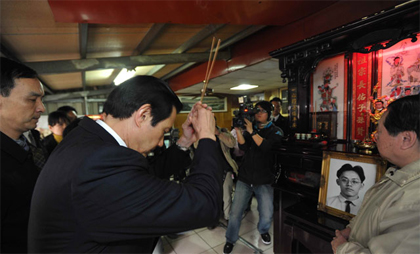 中國臺灣網(wǎng)2月1日消息 據(jù)臺灣《中時電子報》報道,臺灣地區(qū)領(lǐng)導(dǎo)人馬英九十分重視臺空軍士兵江國慶疑遭冤死一案,1日上午11時,他親赴江國慶家中上香致歉。