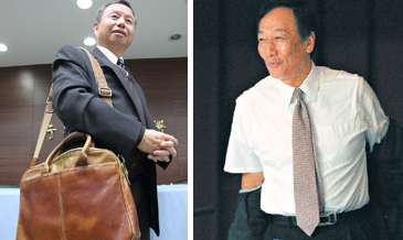 楊志良與郭臺(tái)銘面交公文包。 來源:臺(tái)灣《聯(lián)合晚報(bào)》