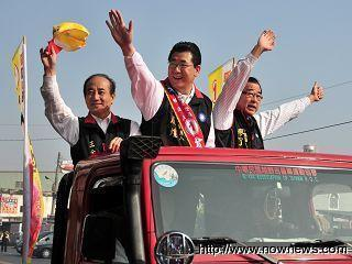 臺(tái)“立法院長(zhǎng)”王金平(左)陪高雄市“立委”補(bǔ)選國(guó)民黨候選人徐慶煌掃街。