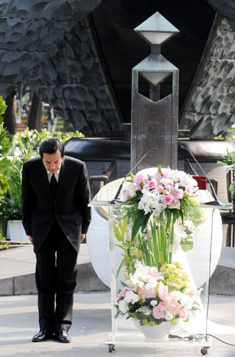 馬英九28日出席在臺北二二八公園舉行的二二八事件64周年“中樞”紀念儀式,代表臺當局再次向受難者及家屬道歉。圖片來源:“中央社”