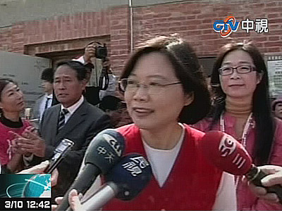 中國(guó)臺(tái)灣網(wǎng)3月11日消息 據(jù)臺(tái)灣“今日新聞網(wǎng)”報(bào)道,民進(jìn)黨主席蔡英文將在今(11)日上午召開(kāi)記者會(huì),宣布參選2012年臺(tái)灣地區(qū)領(lǐng)導(dǎo)人,并將發(fā)表聲明,說(shuō)明她的參選動(dòng)機(jī)、參選心情,以及為何選在此時(shí)宣布參選。臺(tái)媒稱(chēng),這次就換蔡英文先卡位,從小龍女搖身一變?yōu)長(zhǎng)ady Gaga(美國(guó)著名歌手,常以行為超前、古怪博取眼球),頗有報(bào)了上次蘇貞昌率先宣布參選臺(tái)北市長(zhǎng)一箭之仇的意味。
