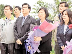 迎戰(zhàn)2012 ▲蔡英文(右)參訪霧峰林家花園,向臺(tái)灣“議會(huì)之父”林獻(xiàn)堂獻(xiàn)花致意。圖片來(lái)源:臺(tái)灣《中國(guó)時(shí)報(bào)》