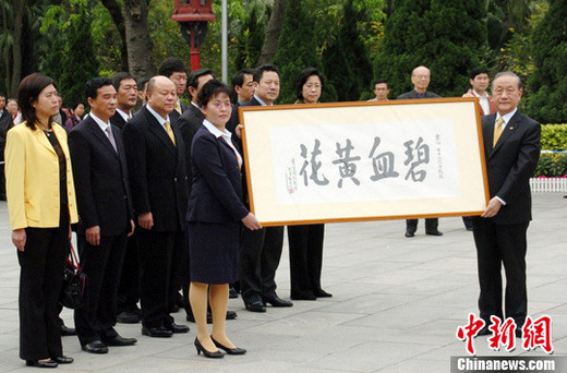 臺(tái)灣新黨主席郁慕明29日上午率領(lǐng)“新黨黃花崗致敬團(tuán)”12人,并代表中國(guó)國(guó)民黨榮譽(yù)主席連戰(zhàn)、吳伯雄來(lái)到廣州黃花崗烈士墓前拜祭。