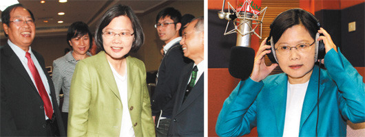 前天,蔡英文接受臺灣“中廣”董事長趙少康專訪,穿“土耳其藍(lán)”的外套(右圖),她昨天出席“自己人”場子、“世界臺商群英”則會穿“橄欖綠”的外套(左圖)。
