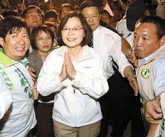 蔡英文昨天在高雄舉行造勢(shì)晚會(huì),希望爭(zhēng)取支持,代表民進(jìn)黨參選2012。(圖片來(lái)源:臺(tái)灣《聯(lián)合報(bào)》)