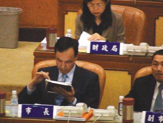 新北市議會昨天因民進(jìn)黨議員聯(lián)合質(zhì)詢時(shí)的杯葛,空轉(zhuǎn)一天,市長朱立倫枯坐等候時(shí),以i-pad查詢資料打發(fā)時(shí)間。