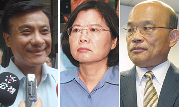 蔡英文(中)副手人選,“雙蘇”蘇貞昌(右)、蘇嘉全(左)浮上臺面。圖片來源:臺灣《聯(lián)合報(bào)》