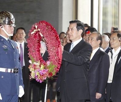 馬英九向?qū)O中山銅像獻花致敬。(圖片來自網(wǎng)絡(luò))
