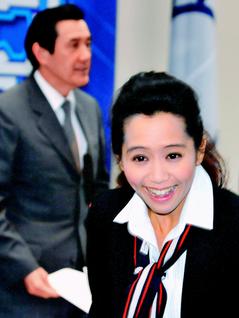 臺(tái)當(dāng)局“青輔會(huì)主委”陳以真(右)28日出席國(guó)民黨中常會(huì),馬英九(左)在會(huì)中肯定陳以真的表現(xiàn),并期待她變成“小龍女”。 來(lái)源:臺(tái)灣《聯(lián)合報(bào)》