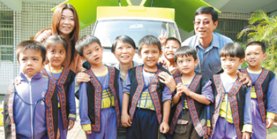 周美青昨天走訪屏東縣偏僻鄉(xiāng)鎮(zhèn)的小學(xué)時,跟小朋友們的合影。(圖片來源于:臺灣《聯(lián)合報》)