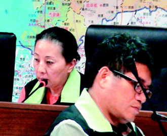 嘉義縣長張花冠(后排左)昨晚現(xiàn)身主持蘇拉緊急應(yīng)變中心會議。來源:臺灣《聯(lián)合報》