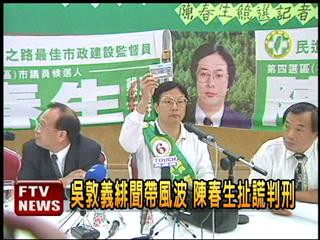 1998年吳敦義參選高雄市長期間,當(dāng)時高雄市議員候選人陳春生公布吳敦義緋聞錄音帶,被吳敦義提告后判刑6月、緩刑定讞。2006年底及2008年間,陳春生卻又對外聲稱緋聞錄音帶是謝長廷交給他。曾擔(dān)任謝長廷市府參事的林宏明,也出庭作證附和陳春生說法。