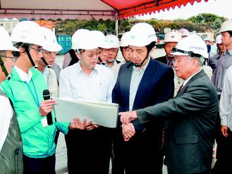 馬英九在多名官員陪同下,前往料羅碼頭到金門醫(yī)院視察施工進度,并與多位鄉(xiāng)、鎮(zhèn)長及里長座談。