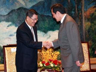 馬英九(右)2日在辦公室接見蕭萬長(zhǎng)(左)。圖片來自臺(tái)灣媒體