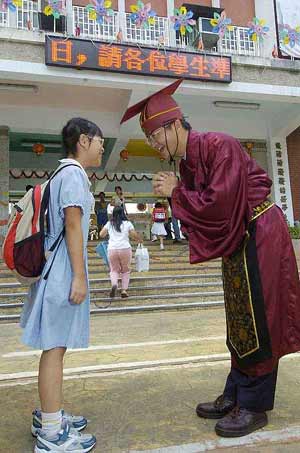 臺灣一小學開學 校長穿古裝打躬作揖迎學生