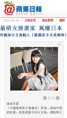 臺(tái)灣“今日新聞網(wǎng)”稱夏達(dá)比漫畫少女還漫畫少女。