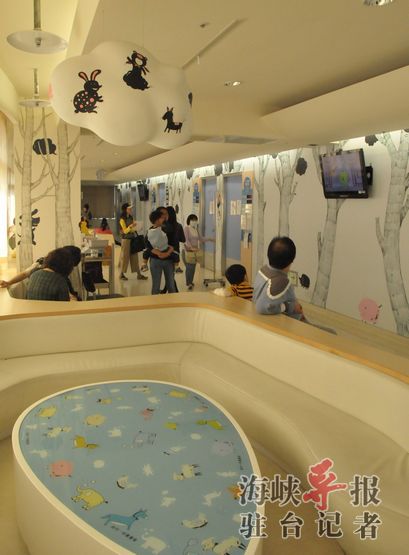 粉色的云狀沙發(fā)、可愛(ài)的木馬板凳,一個(gè)巨型的永動(dòng)游戲機(jī)……在這里,你聞不到藥水味,也很少聽(tīng)到哭聲,有看到一次哭聲是因?yàn)榇笕艘獛『㈦x開(kāi)醫(yī)院,小孩子迷戀那個(gè)永動(dòng)游戲機(jī),趴在地上看都不想被抱出去。