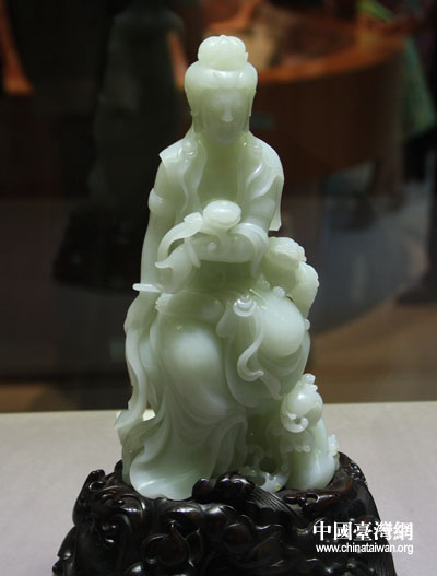 震旦館展示的觀音玉雕。(中國(guó)臺(tái)灣網(wǎng) 張弛 攝)