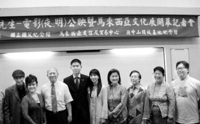25日下午,馬來西亞檳城孫中山基地紀(jì)念館組團(tuán)在臺(tái)灣“國(guó)父紀(jì)念館”舉辦電影《夜·明》公映!兑埂っ鳌窋⑹鰧O中山在檳城宣揚(yáng)革命的事跡,影片在檳城實(shí)景拍攝,由大陸、臺(tái)灣、香港和馬來西亞華人演員共同演出。1906年至1911年,孫中山曾5度到馬來西亞檳城,歷經(jīng)艱辛尋求當(dāng)?shù)孛癖娭С炙邉?dòng)黃花崗起義。圖為《夜·明》公映記者會(huì)上嘉賓合影。(記者 徐蕾)