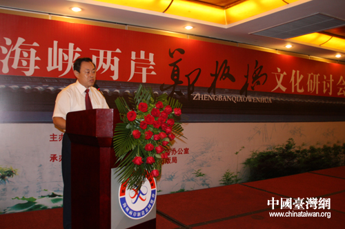 鐘河林在致辭中表示,鄭板橋作為兩岸同胞公認(rèn)的歷史文化名人,給我們留下了十分豐富的文化遺產(chǎn)和精神風(fēng)范。鄭板橋文化的“為民造福和不斷創(chuàng)新”精神,也是我們今天促進(jìn)兩岸關(guān)系和平發(fā)展應(yīng)具有的精神品格。他認(rèn)為,以鄭板橋?yàn)槊,兩岸的專家學(xué)者、普通百姓可以找到共同感興趣的話題,可以更加深入廣泛地從精神層面探求中華文化在兩岸的傳播,從而進(jìn)一步增強(qiáng)兩岸同胞休戚與共的文化認(rèn)同和民族認(rèn)同,促進(jìn)兩岸文化交流向更深層次、更廣闊領(lǐng)域發(fā)展。