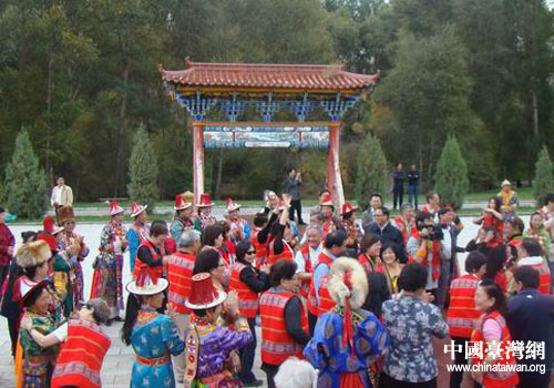 臺(tái)灣少數(shù)民族敦煌文化之旅參訪團(tuán)在肅南裕固族自治縣與當(dāng)?shù)厣贁?shù)民族聯(lián)歡(圖片來源:甘肅省臺(tái)辦)