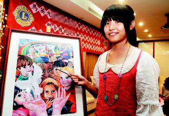 據(jù)臺灣《聯(lián)合報》報道,臺中市五權(quán)初中三年級學生陳郁旻,參加2009到2010年度聯(lián)合國和國際獅子會合辦的國際和平海報創(chuàng)作比賽,擊敗35萬名參賽者,勇得世界第一。