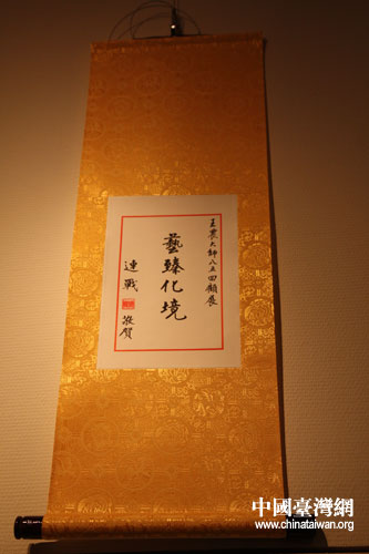 中國國民黨榮譽(yù)主席連戰(zhàn)為展覽題字 (中國臺灣網(wǎng) 劉海偉 攝)